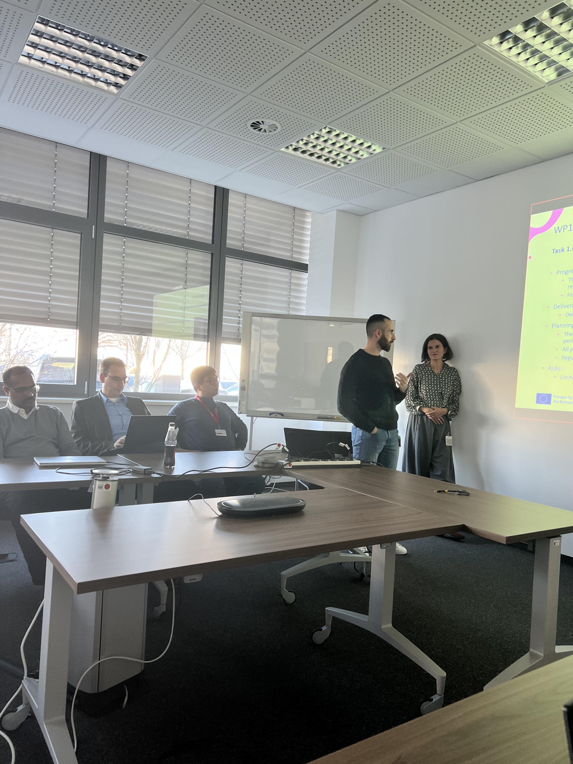 Over the two-day meeting, the consortium reviewed the overall project status, including Work Package progress, timeline, upcoming milestones, and the planning of deliverables and activities for the next six months. Key updates were shared on WP1 (Project Management), WP5 (Integration, Testing & Validation) and WP6 (Outreach & High Impact Creation).